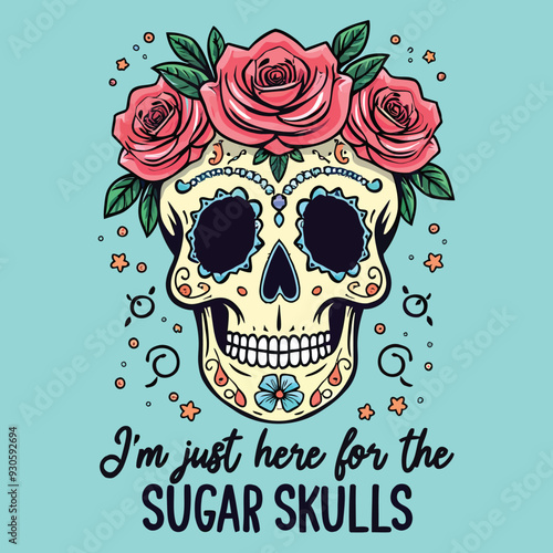 himsical Pastel Sugar Skull T-Shirt with Fun, Hand-Drawn Design