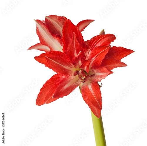 Hippeastrum (amaryllis) Double Galaxy group 'Splash' on a white background isolated