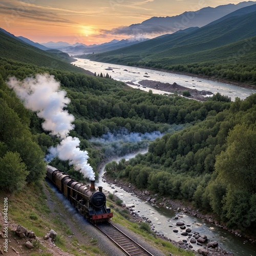 Historic steam train in a great landscape - AI generated