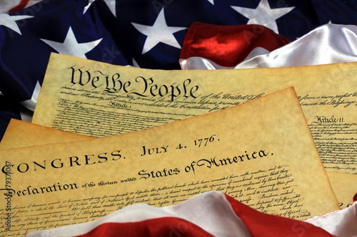 Historical Document US Constitution with America Flag