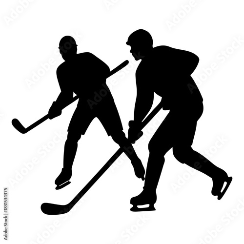 Hockey Player Silhouette Icon on White Background.