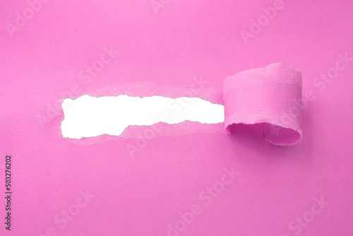 Hole in paper pink color background damaged ripped