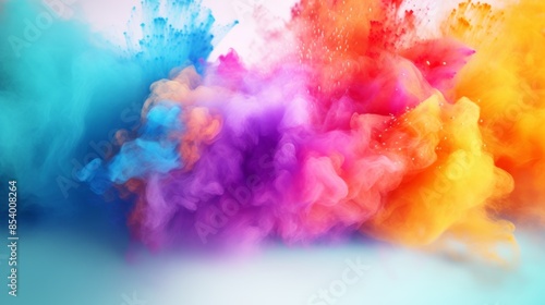 Holi color powder explosion bright colorful rainbow with the search term "Holi color powder festival".