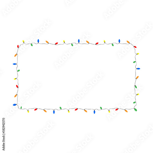 Holiday frame with multi colored Christmas lights for garlands. Decorating Christmas cards with lights and garlands. Cartoon vector isolated on white background