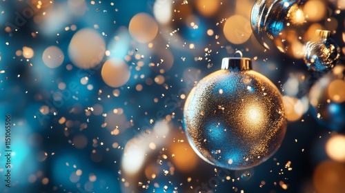 holiday web banner with shimmering gold and blue baubles