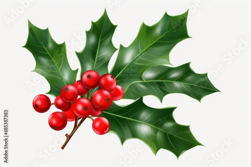 Holly Branch with Vibrant Red Berries and Lush Green Leaves