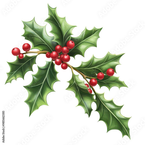 Holly Sprig Illustration: An illustration of a holly sprig with glossy green leaves and bright red berries, evoking festive cheer and the spirit of the holiday season.