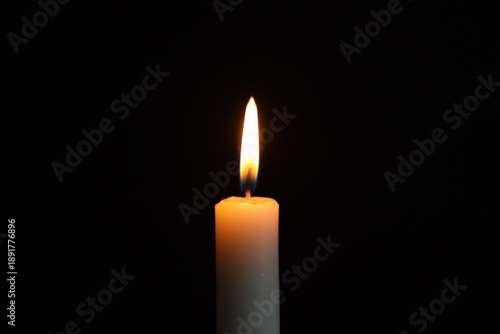 Holocaust Remembrance Day. Burning candle against black background, closeup