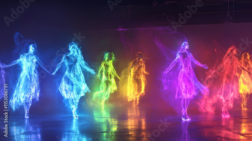 Hologram breakdance. Holographic projection dance. Flickering energy flux of particles. The scientific design of entertainment.
