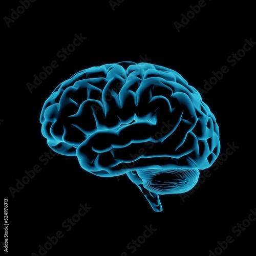 hologram glow blue light human brain isolated on black background. concept of intelligence brain isolated background. 3d illustration