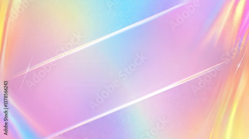 holographic backdrop with iridescent shades, framed by a sleek white border.