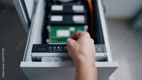 Home battery backup system maintenance with hand adjusting settings for power supply in modern environment