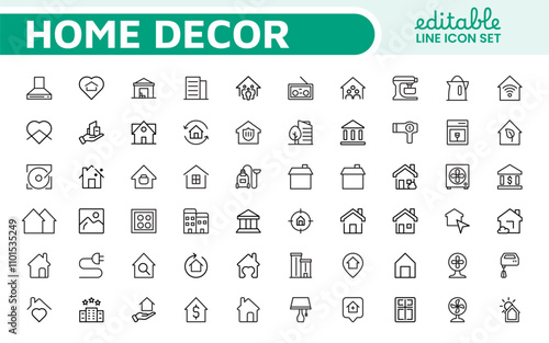 Home Icon Set. A cozy and inviting collection of icons that embody comfort and lifestyle, perfect for enhancing real estate apps, home improvement projects, and websites.