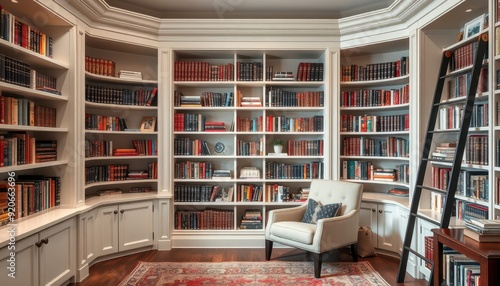 Home Library with Bookcases and Ladder.