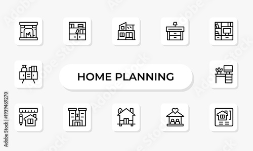 Home Planning Line Icon Set. Architecture, Interior Layout and House Design Outline Icons, Editable Stroke, Pixel Perfect Vector