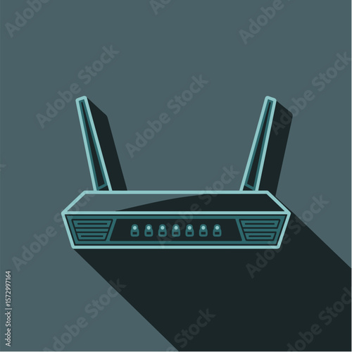 Home router with two antennas in flat vector with dark background, Dark Mode UI style