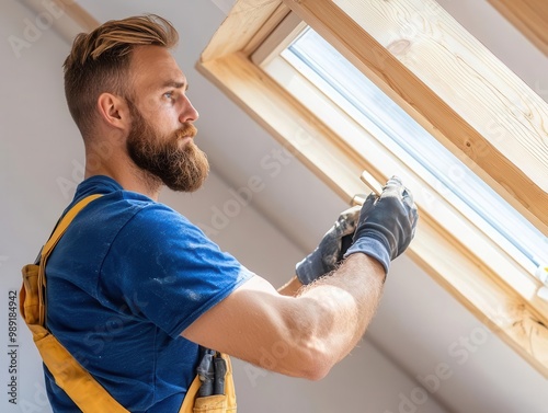Home with workers installing skylights, brightening up the space, skylight installation, natural light