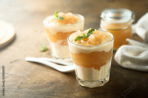 Homemade apple dessert with custard
