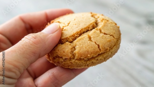 Homemade cookie held in a hand, showcasing texture and color.