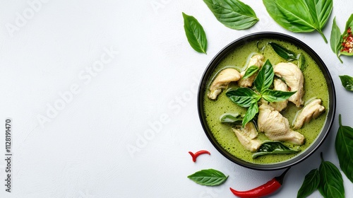 Homemade Green Thai Coconut Curry Soup with Fresh Herbs and Vegetables