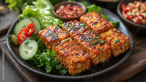 homemade organic tempeh a clean traditional Indonesian meal packed with fresh plant-based protein from fermented soybeans and simple nutrition