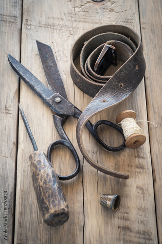 Homemade vintage tools on a wooden background