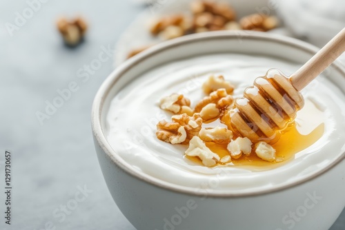 Honey Drizzle Over Greek Yogurt with Walnuts and Popcorn