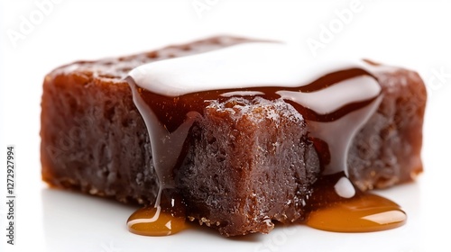 Honeycomb Cube with Honey Dripping on White Background Macro Shot