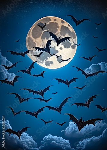 HORDE OF BATS IN THE SKY FLYING creepy wildlife creatures , Generative AI