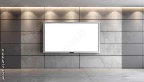 Horizontal LCD Screen Advertisement Mockup. White Background. Vertical Black Lines. Copy Space