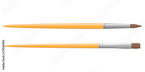 Horizontal View Of Realistic Paint Brushes Vector Illustration.