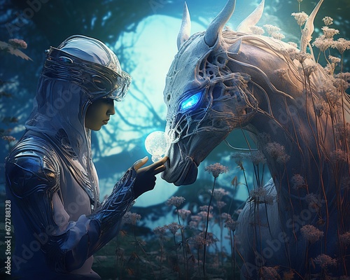 Horse Alien archaeobotanist studying extraterrestrial ecosystems