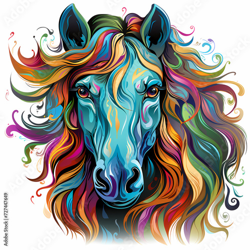 Horse hand drawn multicolor illustration. Funny design.