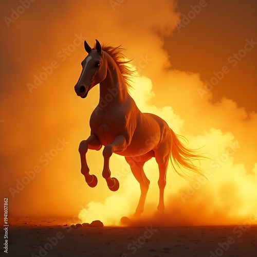 Horse on Fire with Flaming Mane Dramatic. Generative ai.