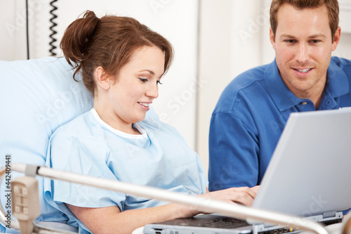 Hospital: Couple Using Laptop in Hospital