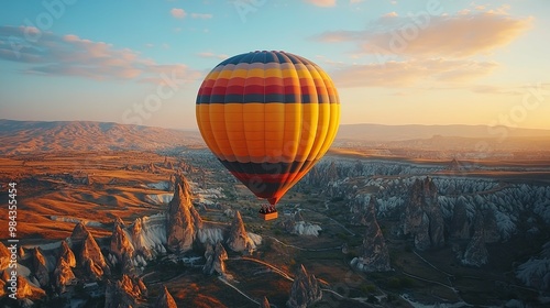 Hot Air Balloon Soaring Over Cappadocia's Fairy Chimneys at Sunset