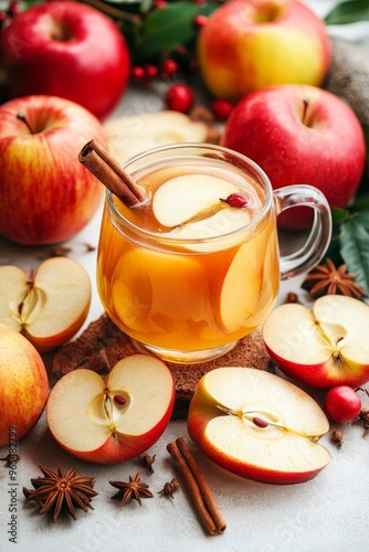 Hot Apple Cider Toddy with Cinnamon Sticks, Star Anise, and Cranberries. Autumn Beverages