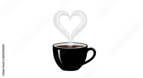 hot coffee cup heart steam isolated