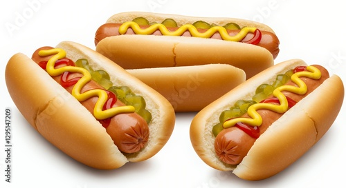 Hot Dog Display with Mustard Ketchup and Pickle Relish Toppings