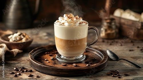 Hot Latte Coffee Served on a Rustic Wooden Table in Cozy Café
