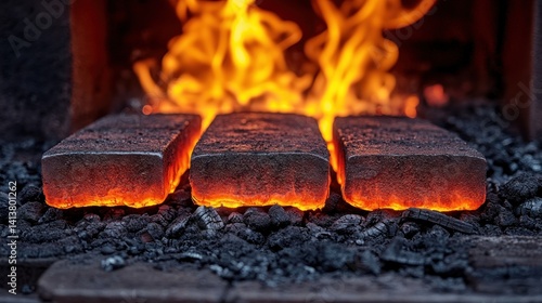 Hot metal ingots heating in forge