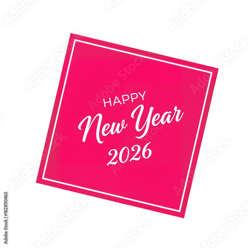 Hot Pink New Year Tag – "Happy New Year 2026" in Elegant Script for a Bold Celebration