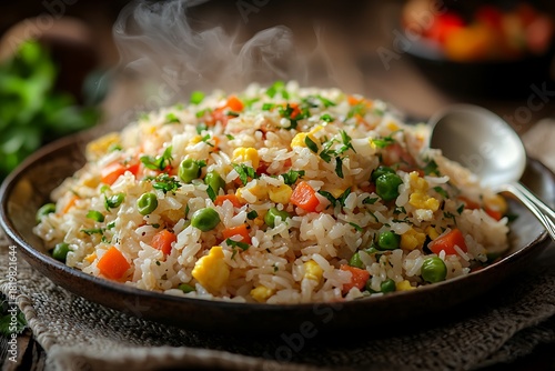 Hot steaming fried rice with egg high resolution picture