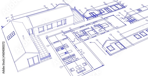 house architectural project sketch 3d illustration