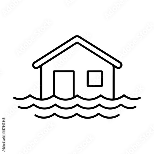 house in the water vector line icon on a white background.