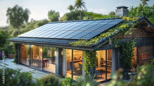 House with Solar Panels Installed on the Roof