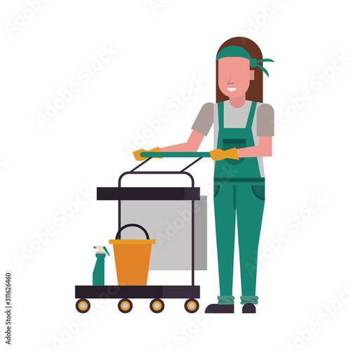 housekepping woman worker with clean equipment
