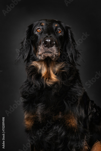 Hovawart dog on black background