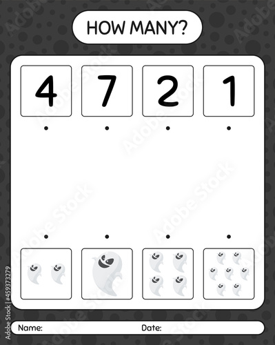 How many counting game with ghost. worksheet for preschool kids, kids activity sheet