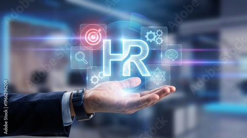 HR human resources management concept, digital recruitment technology, business hiring interface